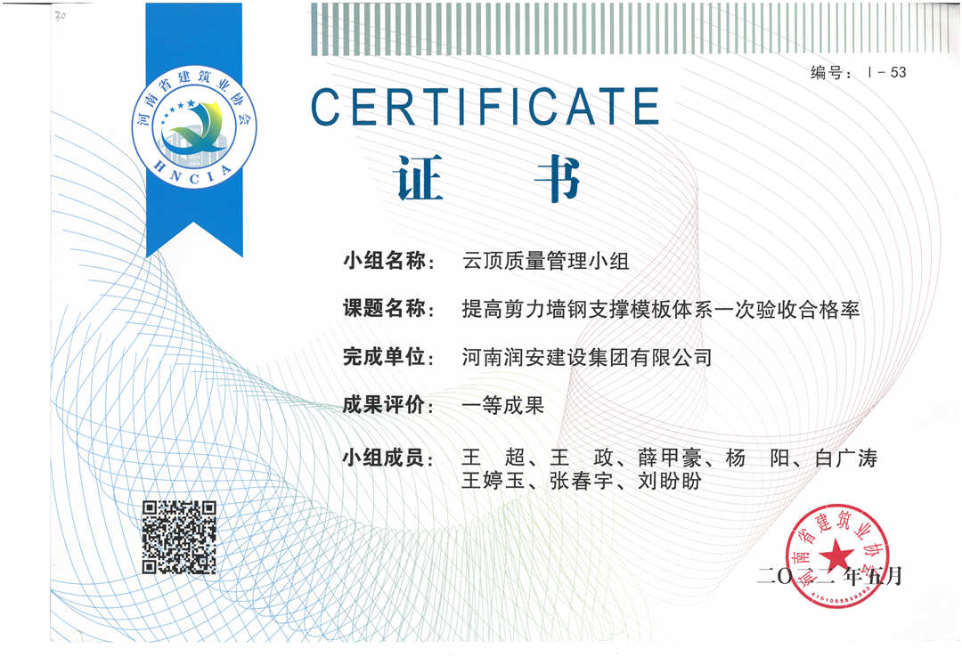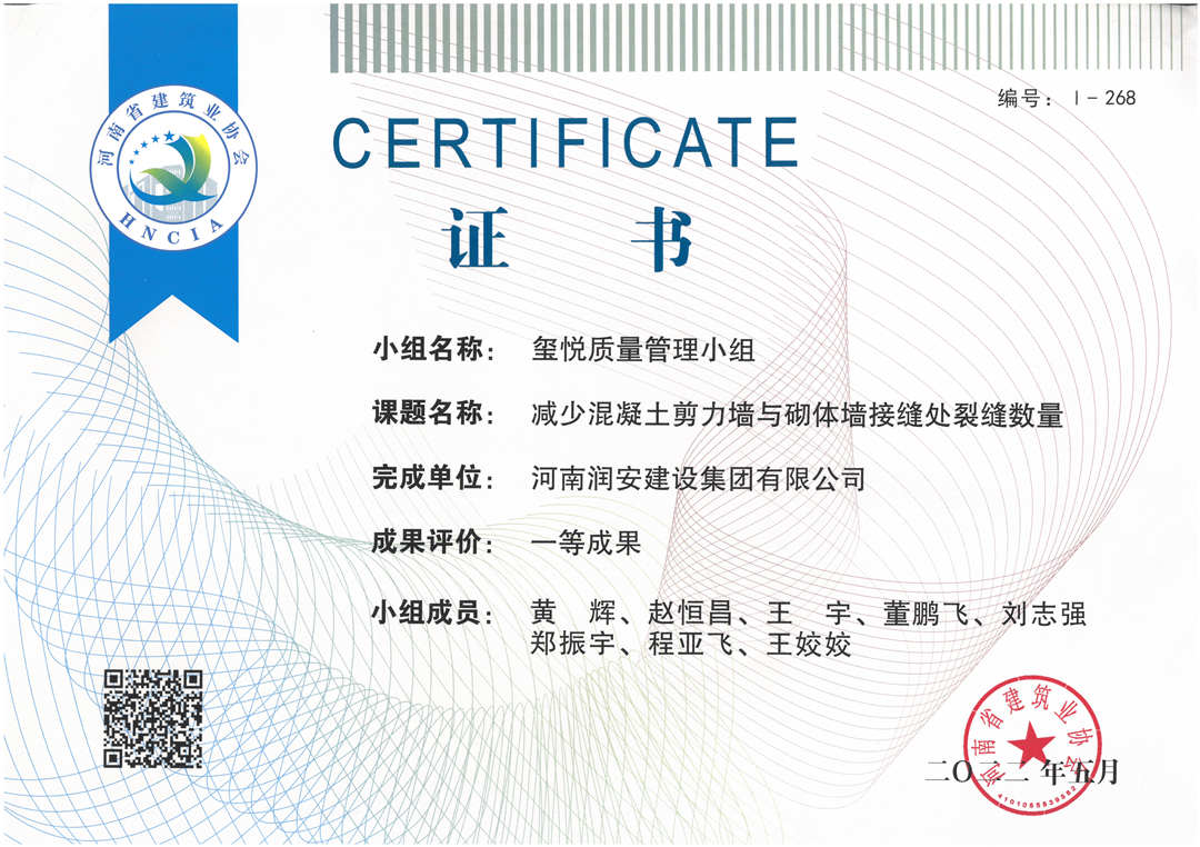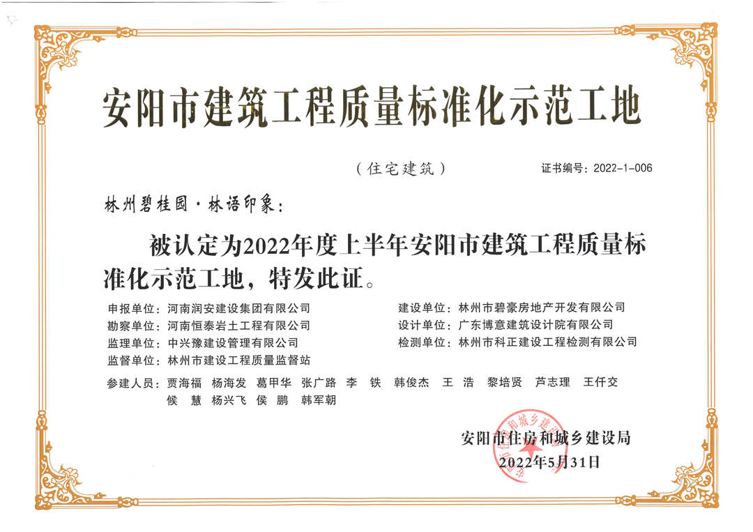 近期,集團(tuán)公司承建的多個(gè)項(xiàng)目捷報(bào)頻傳,先后有“林州碧桂園?林語印象項(xiàng)目”,被評(píng)為2022年上半年安陽市建筑工程質(zhì)量標(biāo)準(zhǔn)化示范工地;潤(rùn)安楓林臺(tái)1-3、5-9號(hào)樓、林州碧桂園?天璽7號(hào)樓榮獲2022年度安陽市殷都杯工程獎(jiǎng)。同時(shí),吾悅鴻城質(zhì)量管理小組、云頂質(zhì)量管理小組、璽悅質(zhì)量管理小組申報(bào)的三項(xiàng)課題均被河南省建筑業(yè)協(xié)會(huì)評(píng)為一等成果。